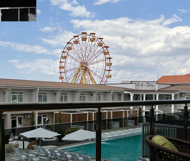 Хороший отдых гарантирован в отеле в Саках у моря "Ле-Ди" с двумя бассейнами - большой открытый и закрытый бассейны для отпуска круглый год. Есть все необходимое для посещения бассейна.